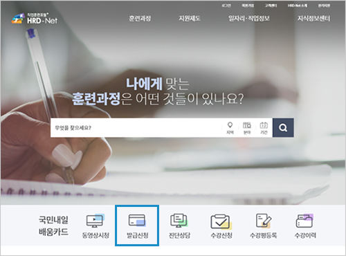 온라인 신청 : HRD-NET 로그인 후 홈페이지 [국민내일배움카드신청]에서 신청